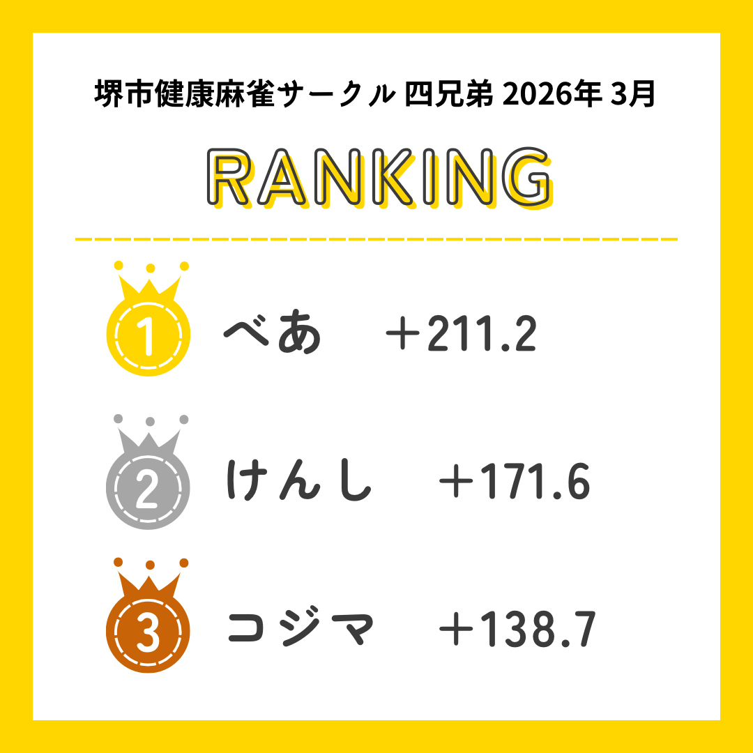 昨日で3月度が終了致しましたのでトータル成績の発表です🫶🀄️